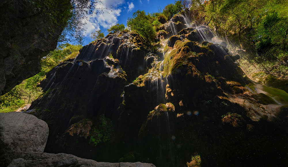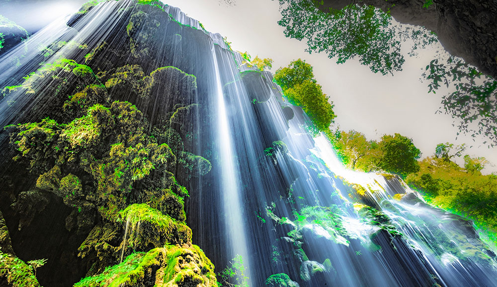 - Unique umbrella-shaped cascading waterfall in pristine natural surroundings.